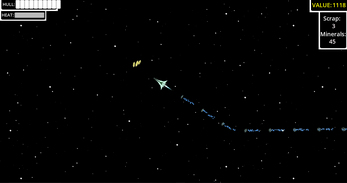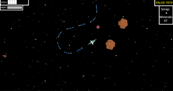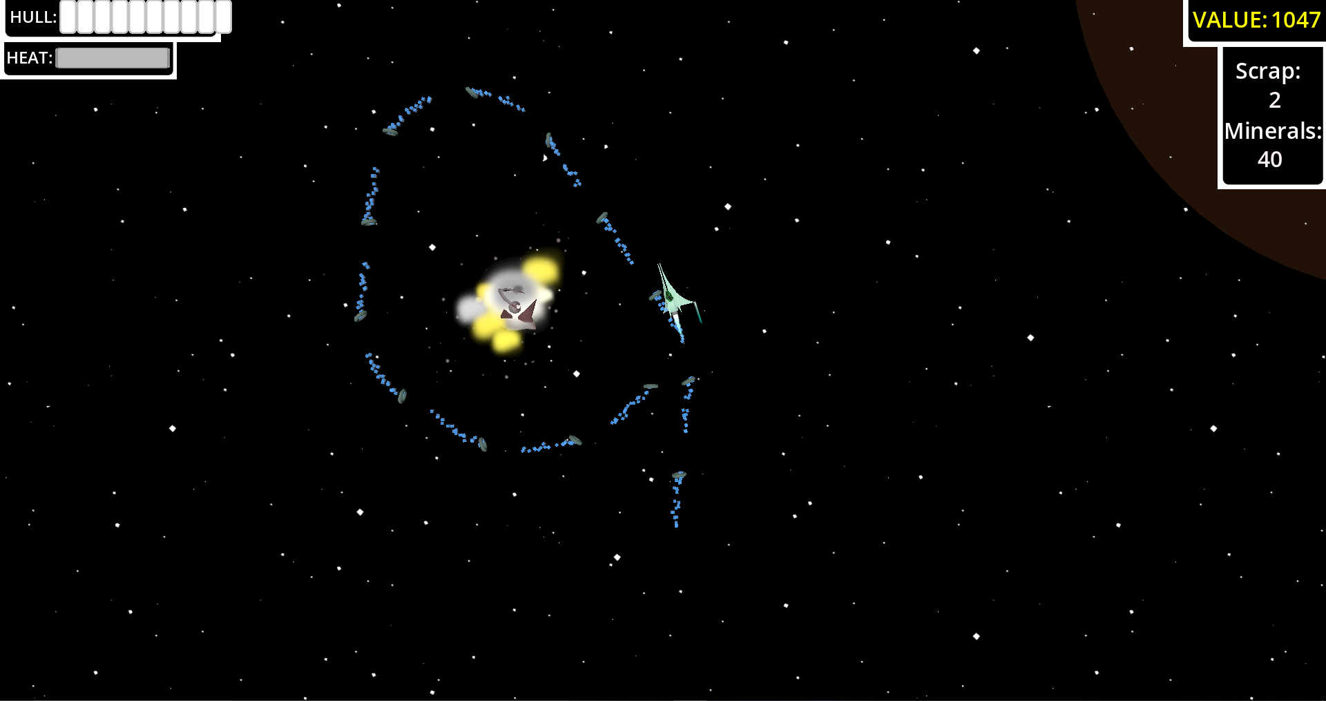 Goal: Loop around asteroids to destroy them, completing a full loop around an asteroid will destroy it and leave behind collectible debris